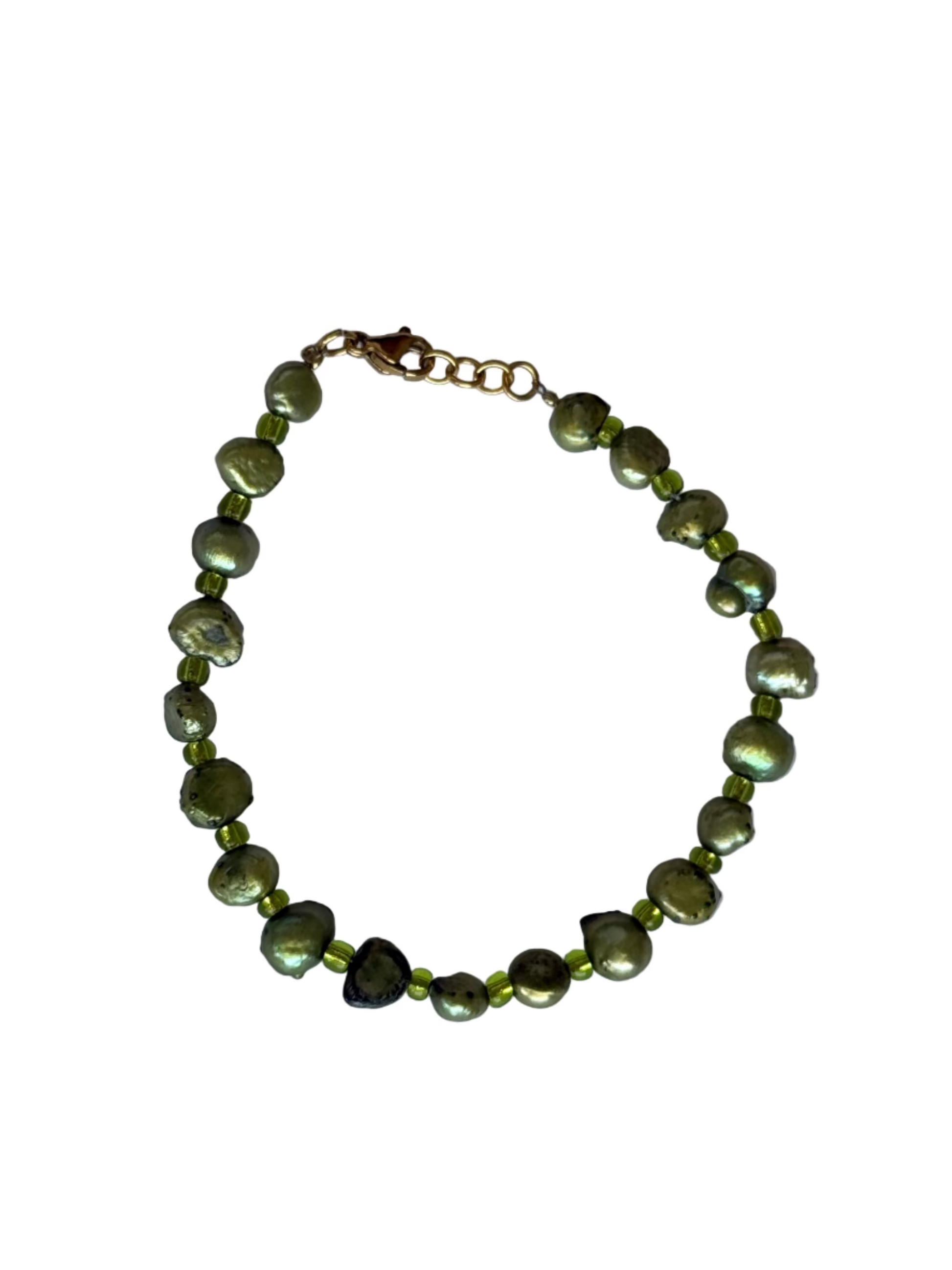 The Isen Bracelet mixes green pearls and glass beads for a soft, balanced look. It’s minimal, easy to style, and adds a calm, natural tone to any stack.