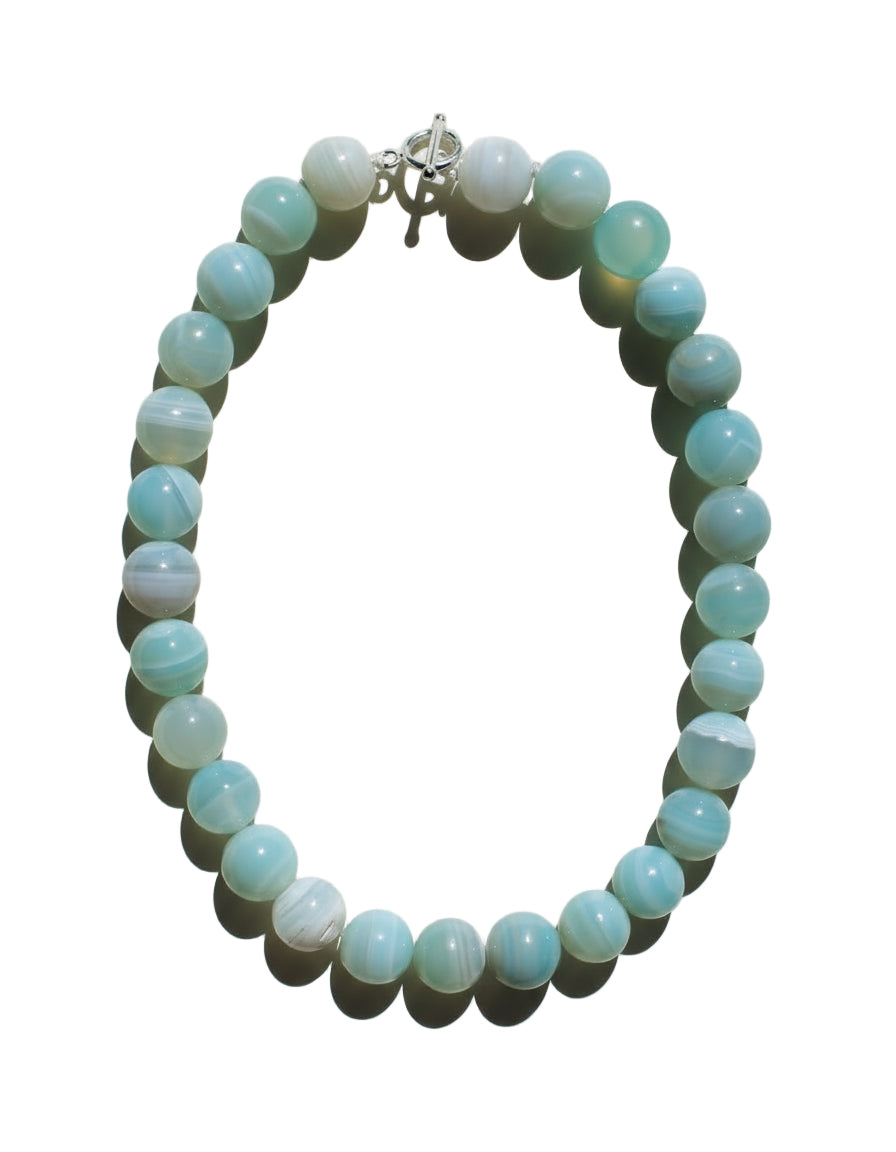 The Nerina Necklace features smooth Amazonite gemstones in soft seafoam tones. Each bead has a natural variation that reflects the calm of the ocean — minimal, balanced, and effortlessly elegant.
