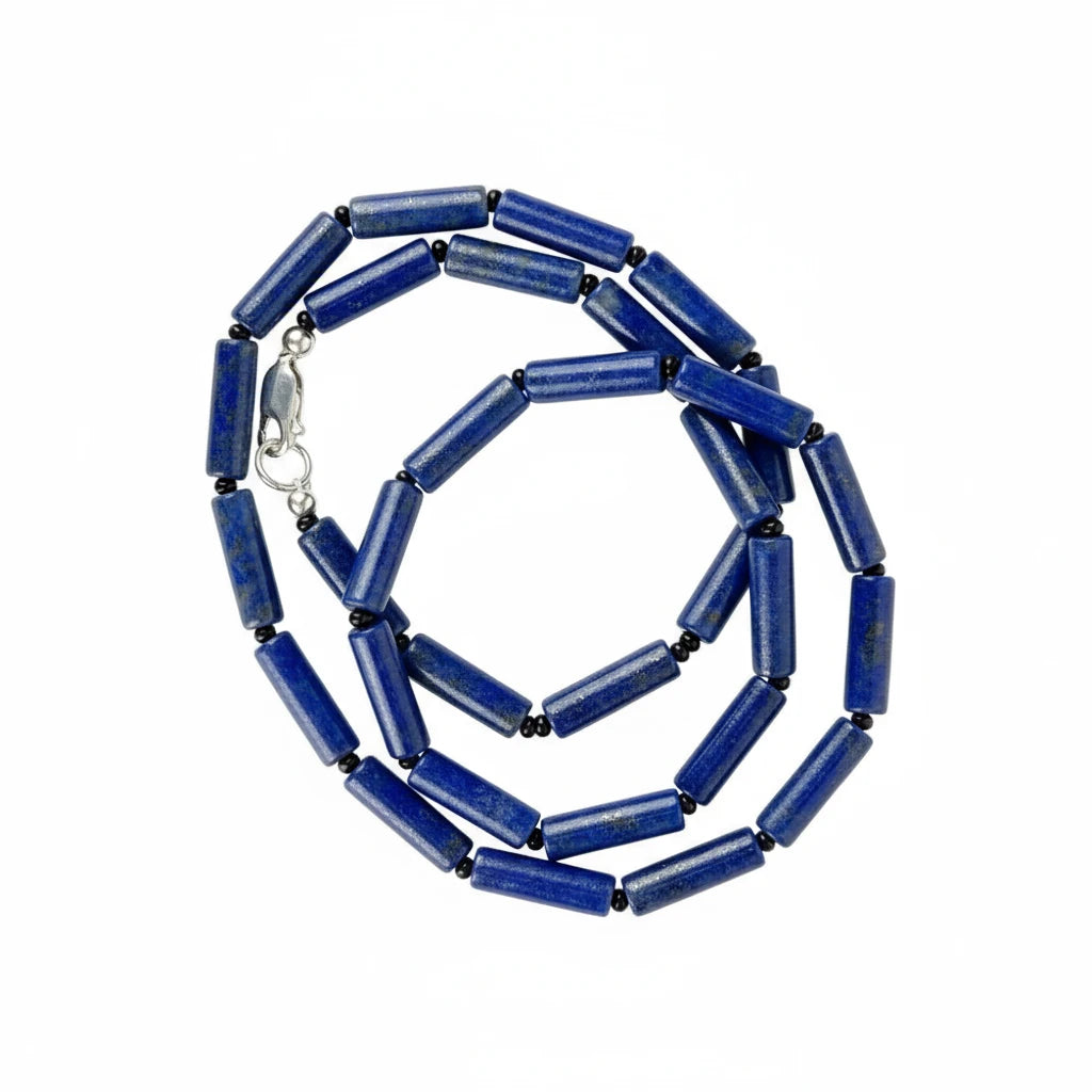 The Nox Necklace embodies quiet strength — deep blue gemstones framed by sleek black spacers that catch the light like midnight waves. Minimal, moody, and magnetic, she’s the kind of piece that doesn’t beg for attention — she commands it.