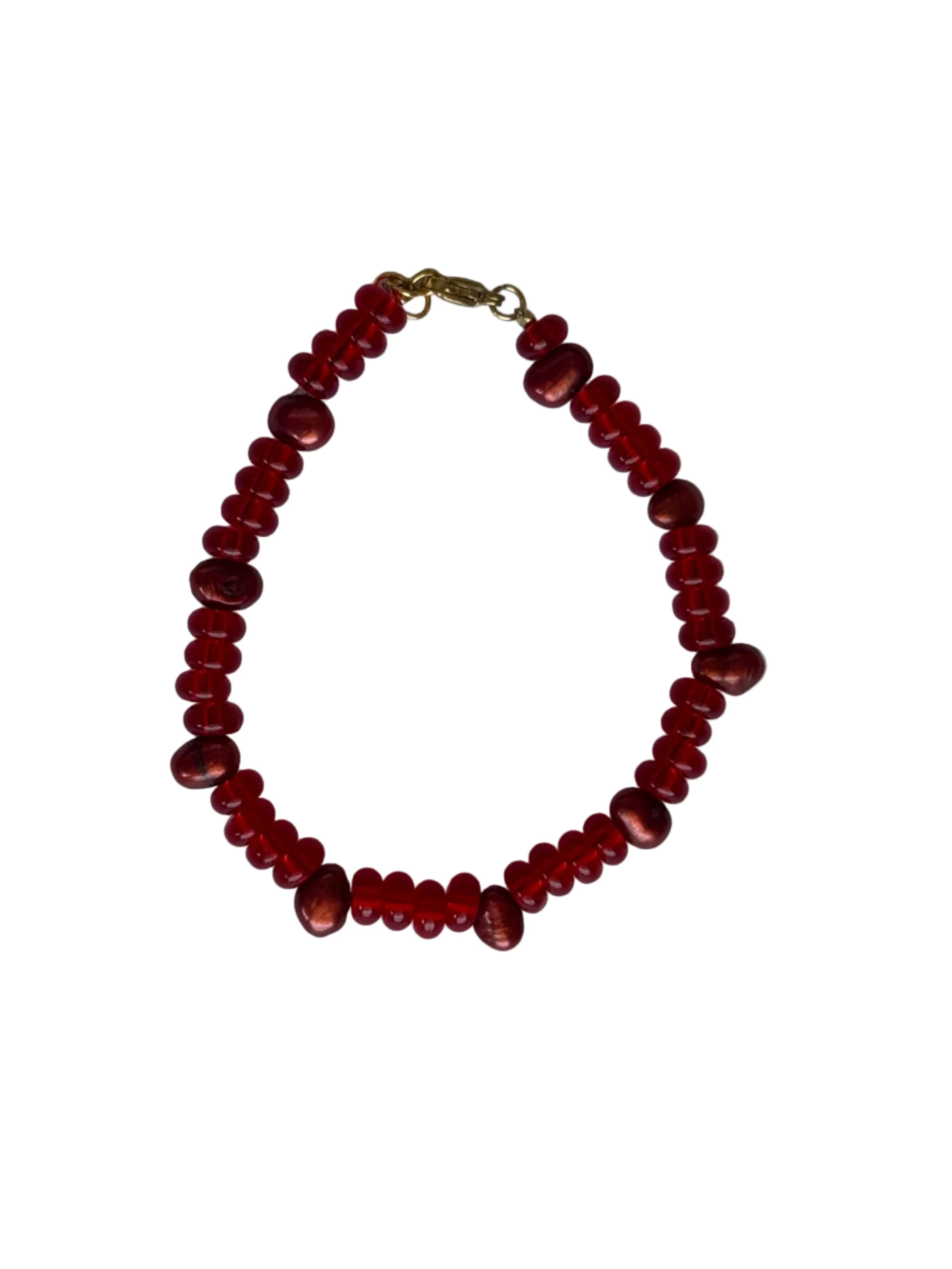 • Red glass beads with freshwater pearls