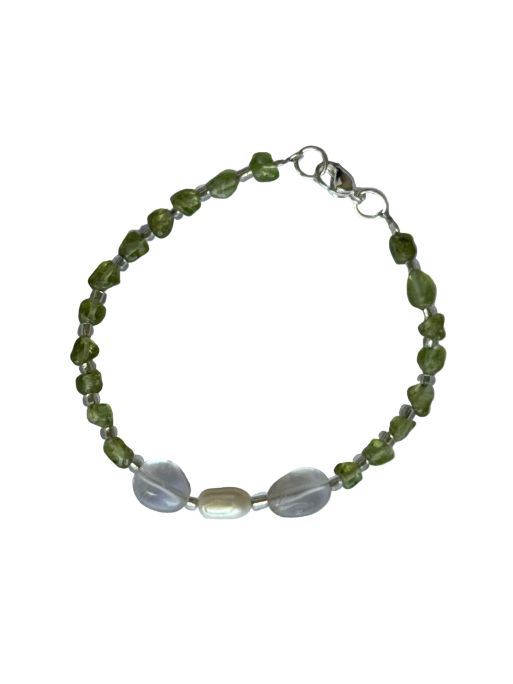 The Ora Bracelet blends freshwater pearls, natural gemstones, and glass beads for a soft, modern look. Each piece is unique, with natural textures and tones that make it easy to wear on its own or layered.