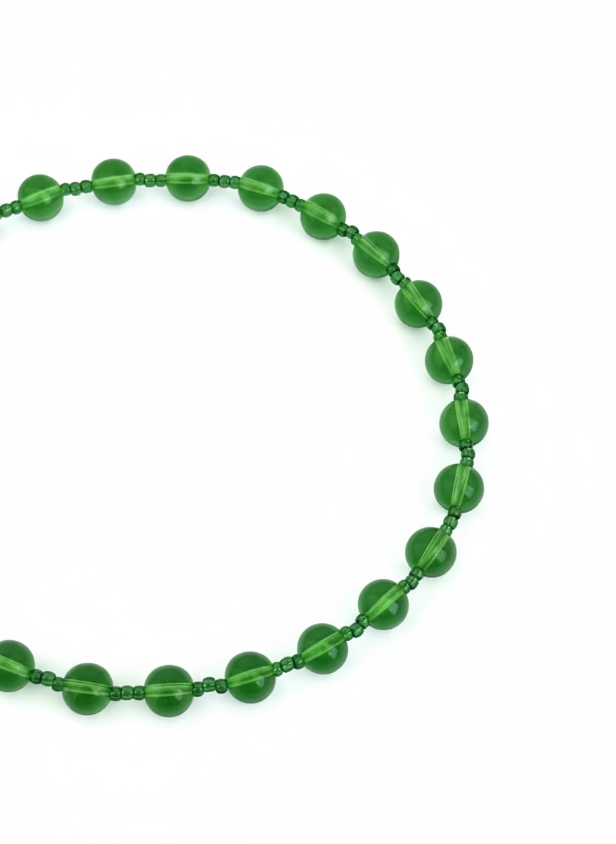 The Céla Necklace keeps it simple and refined. Made from smooth glass beads with a high-shine finish, it’s minimal but elevated — perfect for layering or wearing solo with any look.