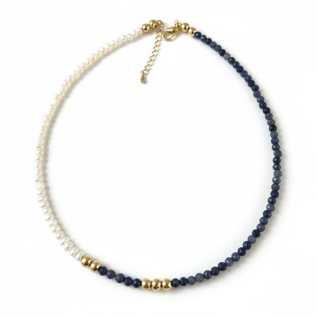 Simple, timeless, and made to last. The Alora Tide Necklace from the Amóra Collection blends natural blue sapphire gemstones with luminous freshwater pearls, creating a refined balance between depth and light. Elegant yet versatile, this piece transitions effortlessly from day to night.