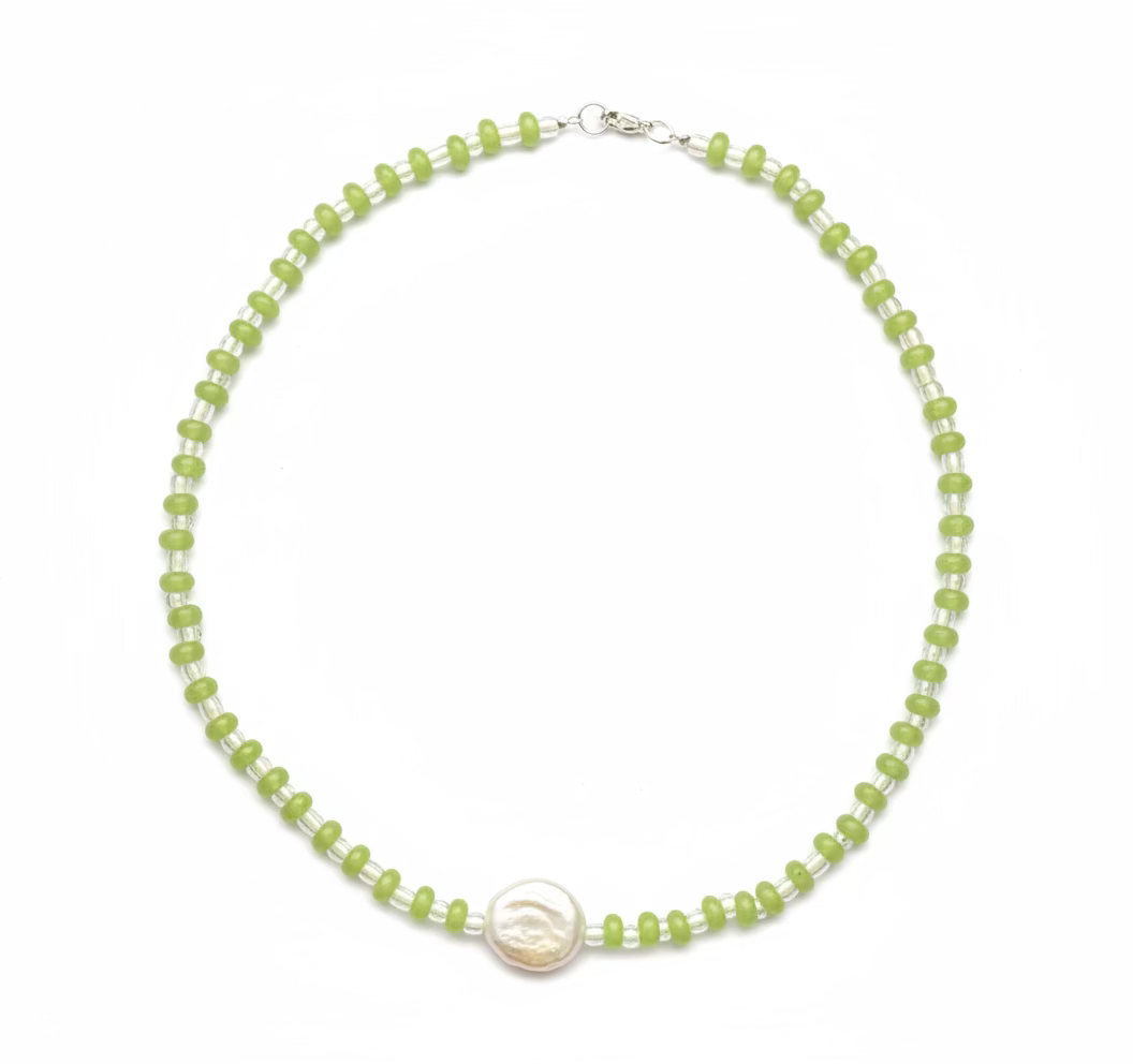 The Ena Necklace captures effortless polish with a touch of natural beauty. Smooth glass beads meet lustrous freshwater pearls, creating a subtle play between light and texture. A refined essential that layers beautifully or stands out on its own.