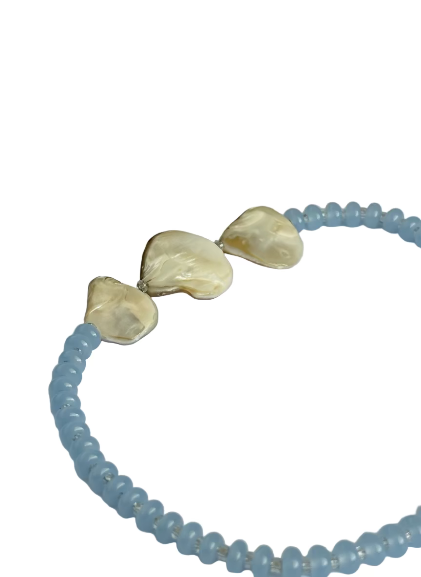 The Isle Necklace blends smooth glass beads with natural shells for a relaxed, coastal look. It’s minimal, light, and easy to wear — designed to bring a soft, ocean-inspired touch to any outfit.