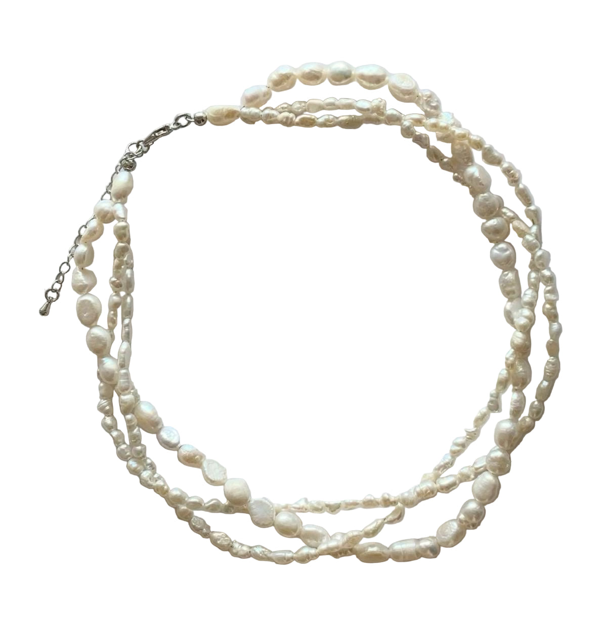 Léa is fluid and romantic — three strands of freshwater pearls layered to create movement and texture that feels effortless yet refined. Each strand falls differently, catching light with every turn. A timeless piece that balances softness and strength.