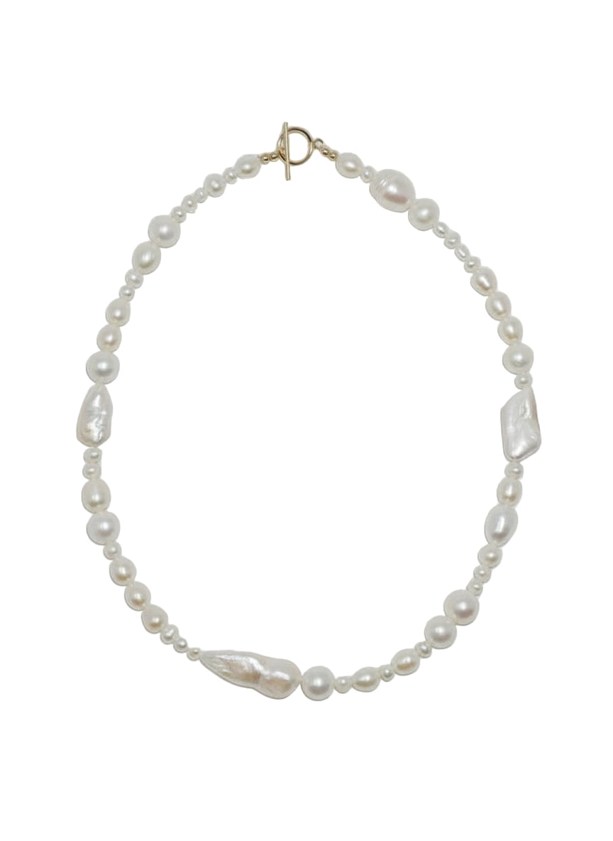 Mare embodies quiet luxury — a modern twist on the classic pearl strand. Alternating round and baroque pearls create soft movement and natural texture, reflecting light with effortless grace. Designed for the ones who shine subtly but powerfully.